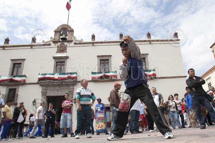 QUERÉTARO, QUERÉTARO, 23SEPTIEMBRE2011.- Oscar "Ceviche" Ibarra, boxeador mexicano que se enfrentará a Sylverter López boxeador en la ceremonia de pesaje abierta al público previo a la función de doble impacto a llevarse a cabo en Provincia Juriquilla este sábado próximo. Donde se disputarán dos campeonatos mundiales de box del Consejo Mundial de Boxeo. FOTO: DEMIAN CHÁVEZ/CUARTOSCURO.COM