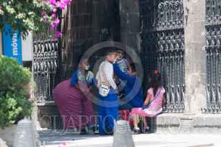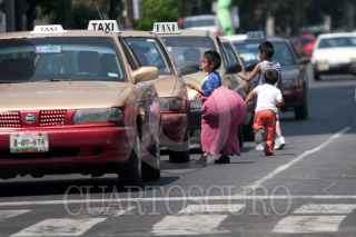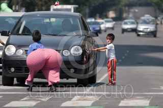 MÉXICO D.F., 25SEPTIEMBRE2011.- Unos niños con el rostro pintado con maquillaje de payaso, acuden a los autos para pedir una ayuda o una moneda y así ayudar en el gasto familiar. FOTO: GUILLERMO PEREA/CUARTOSCURO.COM