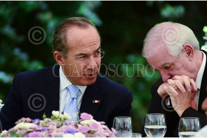 MÉXCO, D.F., 26SEPTIEMBRE2011.- José Antonio Meade, secretario de Hacienda y Crédito Público; Bruno Ferrari, secretario de Economía y Felipe Calderón Hinojosa, presidente de México, dialogan durante su retirada después de haber participado en un almuerzo con motivo del lanzamiento del Fondo Fides y que se realizó en la Hondonada de la Residencia Oficial de Los Pinos. FOTO: MISAEL VALTIERRA/CUARTOSCURO.COM