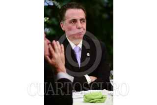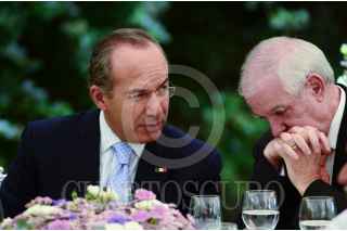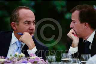 MÉXCO, D.F., 26SEPTIEMBRE2011.- José Antonio Meade, secretario de Hacienda y Crédito Público; Bruno Ferrari, secretario de Economía y Felipe Calderón Hinojosa, presidente de México, dialogan durante su retirada después de haber participado en un almuerzo con motivo del lanzamiento del Fondo Fides y que se realizó en la Hondonada de la Residencia Oficial de Los Pinos. FOTO: MISAEL VALTIERRA/CUARTOSCURO.COM