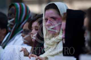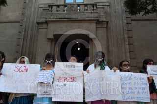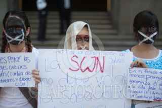 MÉXICO, D.F., 27SEPTIEMBRE2011.- Mujeres se manifestaron para apoyar la reforma constitucional promulgada en Baja California, la cual protege el derecho absoluto a la vida desde la concepción, afuera de la Suprema Corte de Justicia de la Nación. Mientras tanto en en el interior del inmueble que alberga el máximo órgano de justicia del país discute la validez de esta ley. El ministro instructor del proyecto Fernando Franco plantea invalidar el artículo séptimo párrafo primero de la Constitución bajacaliforniana en el sentido de que ninguna constitución local puede definir las garantía fundamentales sobre la Constitución General de la República. FOTO: MOISÉS PABLO/CUARTOSCURO.COM