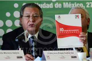 MÉXICO, D.F., 28SEPTIEMBRE2011.- Manlio Fabio Beltrones, senador de la República del Partido Revolucionario Institucional (PRI); saluda a simpatizantes al finalizar un encuentro con académicos y líderes de opinión que organizó este instituto político en un conocido hotel del Centro de la Ciudad de México. FOTO: MISAEL VALTIERRA/CUARTOSCURO.COM