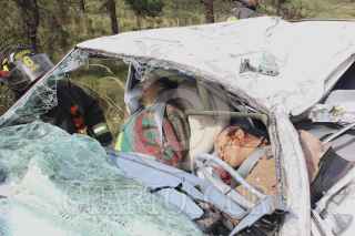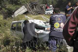 MÉXICO, D.F., 28SEPTIEMBRE2011.- Una pareja de la tercera edad, perdió la vida aplastados por un tráiler que volcó el paso de los viejitos que viajaban en una camioneta Rambler en el Kilometro 47 de la carretera Federal México Cuernavaca a la altura del kilometro 43 perímetro del poblado Tres Marías Delegación Tlalpan. FOTO: LUIS CARBAYO/CUARTOSCURO.COM