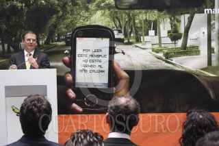 MÉXICO, D.F., 29SEPTIEMBRE2011.- Marcelo Ebrard Casaubon, jefe de Gobierno del Distrito Federal, encabezó la Presentación de la campaña de Nextel sobre el uso responsable del teléfono móvil por automovilistas y peatones. FOTO: CUARTOSCURO.COM