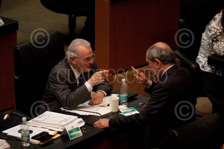 MÉXICO, D.F., 29SEPTIEMBRE2011.- Los senadores Francisco Labastida, PRI y Pablo Gómez, PRD, en la sesión de la Cámara de Senadores. FOTO: MOISÉS PABLO/CUARTOSCURO.COM