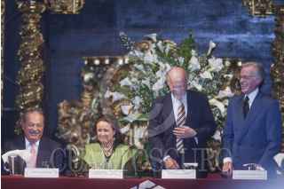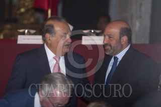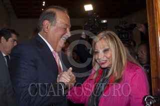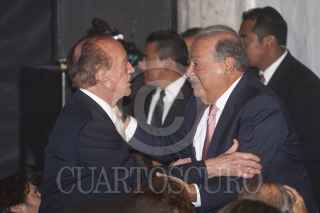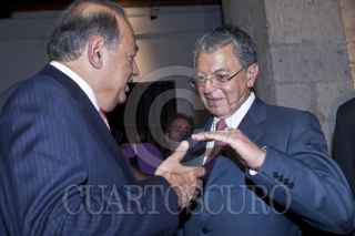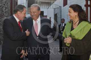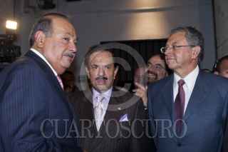 MÉXICO, D.F., 29SEPTIEMBRE2011.- El empresario Carlos Slim, Juan Francisco Ealy, director de El Universal, y Manuel Camacho Solis, durante la ceremonia donde el primero recibió la presa Sor Juana Inés de la Cruz que otorga la Universidad del Claustro de Sor Juana, por los diez años de trabajo que ha realizado al frente del Comité Ejecutivo del Consejo Consultivo para el Rescate del Centro Histórico. En la imagen, a su llegada al recinto educativo. FOTO: ISAAC ESQUIVEL/CUARTOSCURO.COM