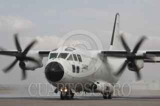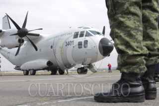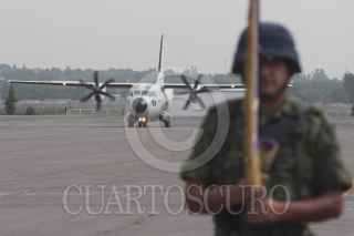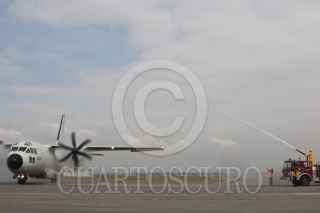 TECAMAC, ESTADO DE MÉXICO, 30SEPTIEMBRE2011.- Elementos de la Fuerza Aérea Mexicana, presentaron el avión C-27J Spartan en la base aerea de Santa Lucia, el cual desempeñara las misiones de transporte de personal y carga, Lanzamiento de aerotropas, evacuaciones medicas y operaciones especiales. FOTO: ENRIQUE ORDÓÑEZ/CUARTOSCURO.COM