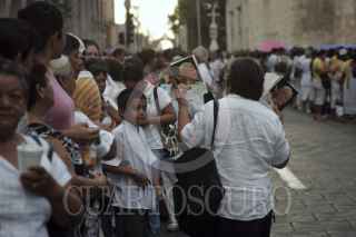 MÉRIDA, YUCATÁN, 01OCTUBRE2011.- Más de 10, 000 fieles le dieron un cálido y cariñoso recibimiento a la reliquias del papa Juan Pablo II que llegaron esta mañana a la catedral. Los objetos del beato fueron acogidos por el arzobispo monseñor Emilio Carlos Berlie Belaunzarán. FOTO: FRANCISCO BALDERAS/CUARTOSCURO.COM