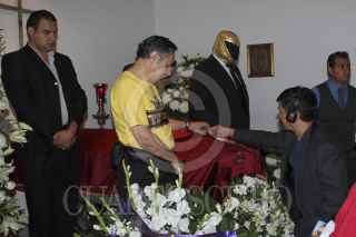 MÉXICO, D.F., 01OCTUBRE2011.- El actor Gaspar Henaine "Capulina", murió a los 85 años víctima de una neumonía. Sus restos fueron velados en una funeraria de la colonia del Valle a la que acudieron el luchador Tinieblas con quien compartió el escenario en varios películas. FOTO: IVÁN MENDEZ/CUARTOSCURO.COM