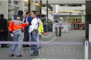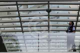 MÉXICO, D.F., 03SEPTIEMBRE2011.- Esta tarde cuarenta y dos cristales de la estructura del domo del centro comercial Reforma 222, sufrieron daños y uno cayó al patio central desconociendo la causa de los daños y no provocando heridos pero si crisis nerviosa entre los paseantes. Al lugar arribaron elementos de Protección Civil y del H. Cuerpo de Bomberos para inspeccionar el edificio. FOTO: MISAEL VALTIERRA/CUARTOSCURO.COM