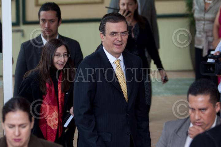 MÉXICO, D.F., 04OCTUBRE2011.- Marcelo Ebrard, jefe de gobierno del Distrito Federal acompañado de la asambleísta Alejandra Barrales y de Mara Robles Villaseñor durante la presentación de la iniciativa de Ley para el Servicio Público de Carrera para la administración Pública del Distrito Federal que se realizo en la sede de la Escuela de Administración Pública del Distrito Federal. FOTO: RODOLFO ANGULO/CUARTOSCURO.COM