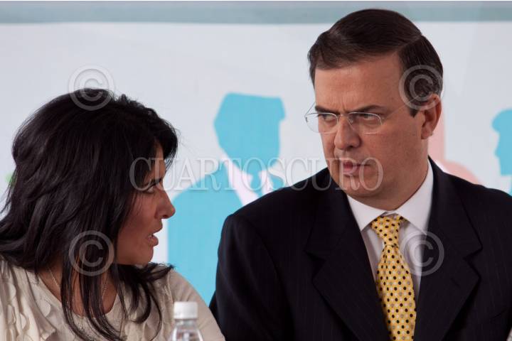 MÉXICO, D.F., 04OCTUBRE2011.- Marcelo Ebrard, jefe de gobierno del Distrito Federal acompañado de la asambleísta Alejandra Barrales y de Mara Robles Villaseñor durante la presentación de la iniciativa de Ley para el Servicio Público de Carrera para la administración Pública del Distrito Federal que se realizo en la sede de la Escuela de Administración Pública del Distrito Federal. FOTO: RODOLFO ANGULO/CUARTOSCURO.COM