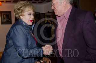 MÉXICO, D.F., 04OCTUBRE2011.- La primera actriz Silvia Pinal y Eduardo Manzano "El Polivoz", durante una conferencia de prensa que ofreció la Asociación Rafael Banquells, A.C., que encabeza Silvia Pinal, donde dieron a conocer detalles de la 20ª entrega del Premio Bravo, reconociendo lo más importante del cine, radio, doblaje, teatro, publicidad y televisión del año. FOTO: MISAEL VALTIERRA/CUARTOSCURO.COM