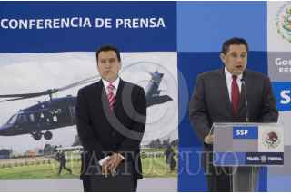 MÉXICO, D.F., 2011.- Facundo Rosas Rosas y Ramón Eduardo Pequeño García, comisionado General y jefe de la División Antidrogas, ambos de la Policía Federal, en conferencia de prensa anunciaron los diferentes golpes que ha recibido la estructura criminal del cártel "La Familia", durante esta mañana en donde se presentó a cuatro detenidos presuntamente integrantes de esta organización. FOTO: MISAEL VALTIERRA/CUARTOSCURO.COM