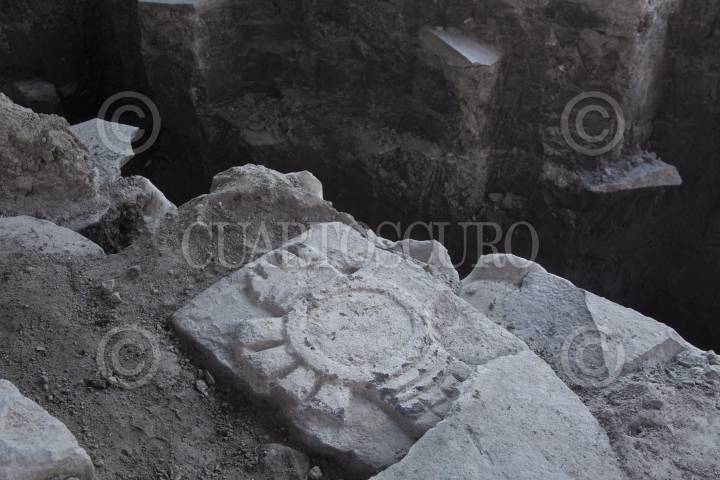 MÉXICO, D.F., 05OCTUBRE2011.- Una plataforma circular de aproximadamente 15 metros de diámetro en la que se encuentran incrustadas cabezas de serpiente fue descubierta en el Templo Mayor, el cual es considerado uno de los descubrimientos más importantes de los últimos años. FOTO: RODOLFO ANGULO/CUARTOSCURO.COM