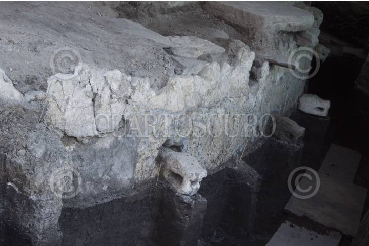 MÉXICO, D.F., 05OCTUBRE2011.- Una plataforma circular de aproximadamente 15 metros de diámetro en la que se encuentran incrustadas cabezas de serpiente fue descubierta en el Templo Mayor, el cual es considerado uno de los descubrimientos más importantes de los últimos años. FOTO: RODOLFO ANGULO/CUARTOSCURO.COM