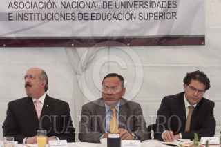 MÉXICO, D.F., 05OCTUBRE2011.- Armando Ríos Piters, coordinador de los diputados federales del PRD, Jesús Zambrano, dirigente nacional del partido del sol azteca, y Rafael López Castañares, secretario general de la Asociación Nacional de Universidades e Instituciones de Educación Superior, ofrecieron una conferencia de prensa tras concluir una reunión entre los dirigentes de izquierda con los representantes de las universidades. FOTO: MOISÉS PABLO/CUARTOSCURO.COM