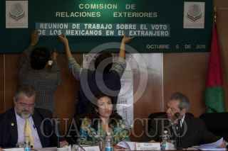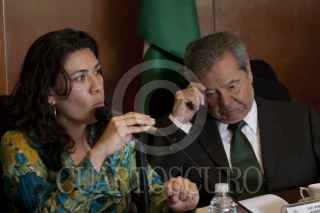 MÉXICO, D.F., 05SEPTIEMBRE2011.- Dalia Moreno López, Coordinadora del Voto de los Mexicanos en el Extranjero del Instituto Federal Electoral, y Porfirio Muñoz Ledo, Diputado del PT y presidente de la Comisión de Relaciones Exteriores, durante su reunión en la Cámara de Diputados. FOTO: GUILLERMO PEREA/CUARTOSCURO.COM