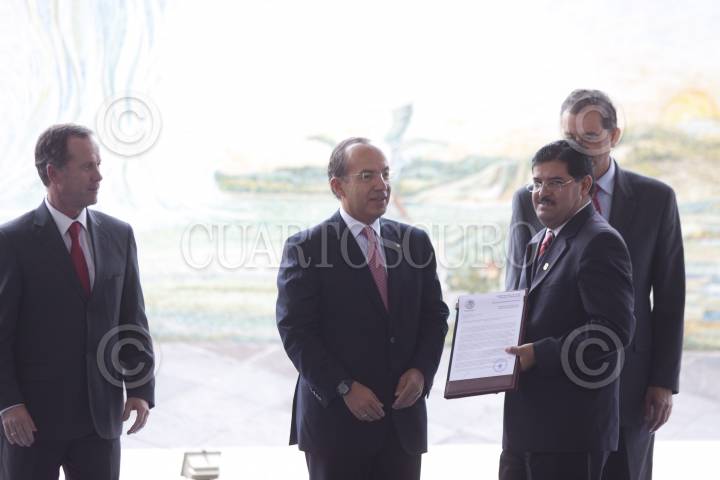 MÉXICO, D.F., 05OCTUBRE2011.- Felipe Calderón Hinojosa, presidente de México, durante la entrega de títulos de asignación de la Reforma al decreto de veda del río Balsas, realizado en la explanada de la CONAGUA. FOTO: IVÁN STEPHENS/CUARTOSCURO.COM