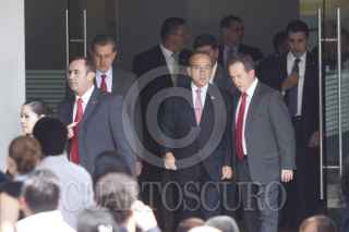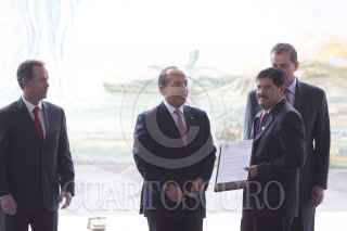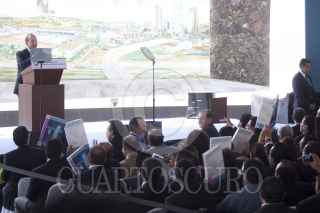 MÉXICO, D.F., 05OCTUBRE2011.- Felipe Calderón Hinojosa, presidente de México, durante la entrega de títulos de asignación de la Reforma al decreto de veda del río Balsas, realizado en la explanada de la CONAGUA. FOTO: IVÁN STEPHENS/CUARTOSCURO.COM