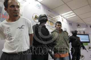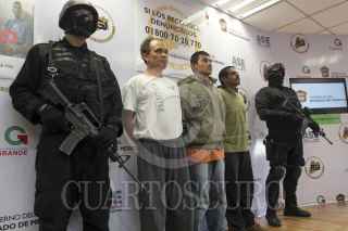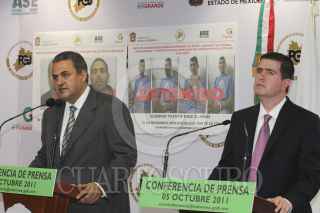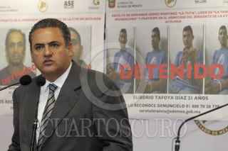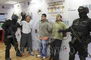 TOLUCA, ESTADO DE MÉXICO, 05OCTUBRE2011.- Personal de la Agencia de Seguridad Estatal, y Procuraduria de Justicia del Estado de México,presentaron ante los medios de comunicación a tres personas relacionadas con el asesinato del líder de la CTM en la zona oriente del estado, Noé Zarco. FOTO: SAÚL LÓPEZ/CUARTOSCURO.COM