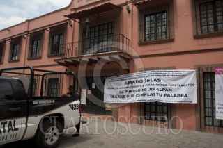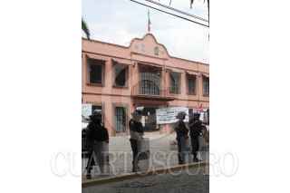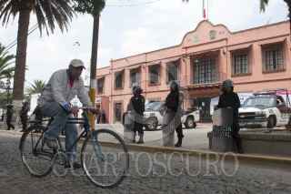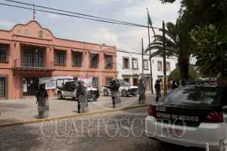 TEPETLAOXTOC, ESTADO DE MÉXICO 06OCTUBRE2011.-Elementos de la Agencia de Seguridad Estatal, resguardan la cabecera municipal de este municipio tras la agresión que sufrieran funcionarios públicos al momento en que un grupo de la comunidad de San Pablo Jolalpan irrumpió en el Palacio Municipal, entre los agredidos se encontraban Amado islas Espejel, presidente municipal Iván Contla, secretario del ayuntamiento y Miguel Álvarez Carrasco, subdirector de Protección Civil, estos hechos ocurrieron mientras se realizaba la sesión de cabildo FOTO: GUILLERMO PEREA/CUARTOSCURO.COM