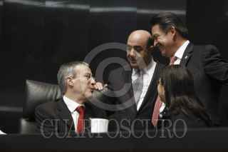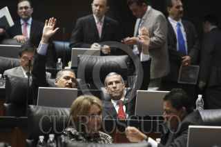 MÉXICO, D.F., 06OCTUBRE2011.- Manlio Fabio Beltrones, coordinador de los senadores del PRI, y José González Morfín, presidente de la mesa directiva del Senado de la República, durante la votación en la sesión de la Cámara Alta. FOTO: CUARTOSCURO.COM