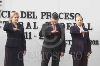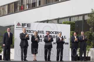 MÉXICO, D.F., 07OCTUBRE2011.- El consejero presidente Leonardo Valdés Zurita encabezó la ceremonia cívica del inicio formal del Proceso Electoral Federal 2011-2012 en la explanada del instituto. FOTO: MOISÉS PABLO/CUARTOSCURO.COM