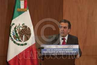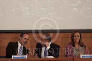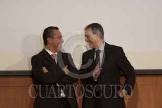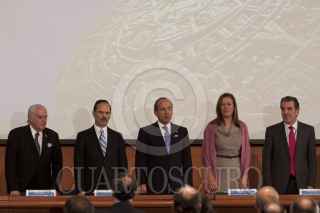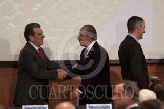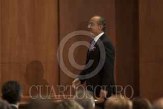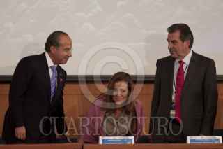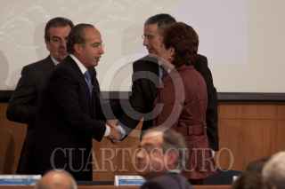MÉXICO, D.F., 07OCTUBRE2011.- El presidente Felipe Calderón saluda al senador José Gonzalez Morfin y de Patricia Castellanos, secretaria de Relaciones Exteriores al termino de la clausura de la conferencia de líderes de la Organización Democrática Cristiana de América que se realizo en la sede nacional del Partido Acción Nacional. FOTO: RODOLFO ANGULO/CUARTOSCURO.COM