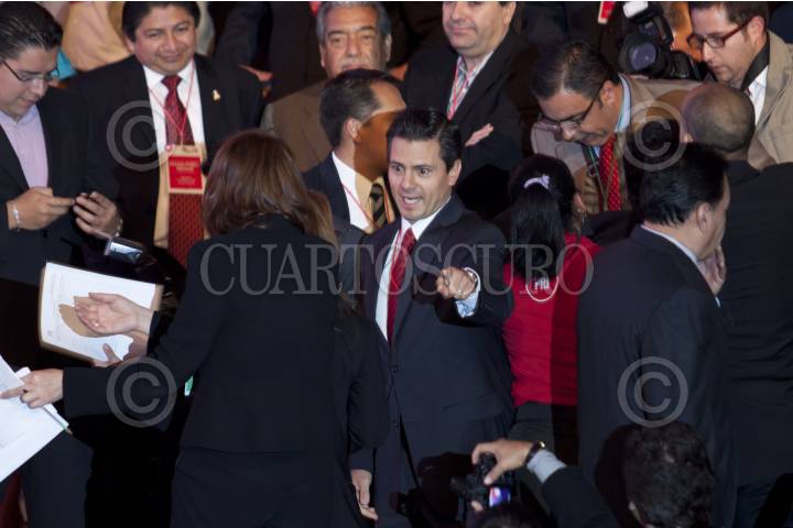 MÉXICO, D.F., 08OCTUBRE2011.- Humberto Moreira, presidente nacional del PRI; Enrique Jackson, secretario técnico y el diputado Francisco Rojas durante una votación en el Consejo Político Nacional del Partido Revolucionario Institucional (PRI), en donde se aprobó que la elección del candidato presidencial sea directa y abierta a militantes y simpatizantes; este evento se realizo en la sede nacional del partido. FOTO: RODOLFO ANGULO/CUARTOSCURO.COM