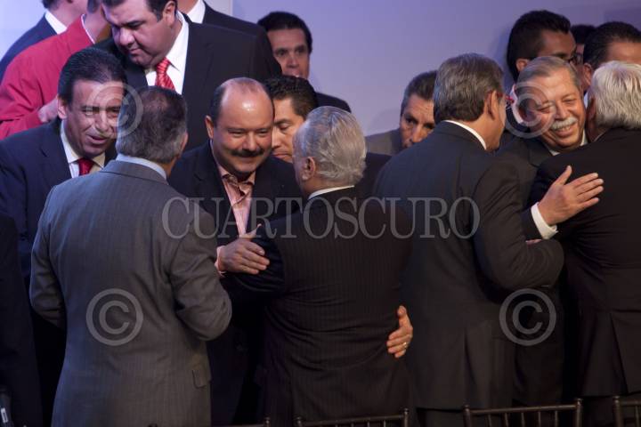 MÉXICO, D.F., 08OCTUBRE2011.- Humberto Moreira, presidente nacional del PRI; Enrique Jackson, secretario técnico y el diputado Francisco Rojas durante una votación en el Consejo Político Nacional del Partido Revolucionario Institucional (PRI), en donde se aprobó que la elección del candidato presidencial sea directa y abierta a militantes y simpatizantes; este evento se realizo en la sede nacional del partido. FOTO: RODOLFO ANGULO/CUARTOSCURO.COM