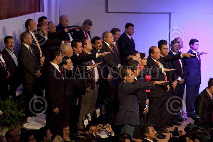 MÉXICO, D.F., 08OCTUBRE2011.- Humberto Moreira, presidente nacional del PRI; Enrique Jackson, secretario técnico y el diputado Francisco Rojas durante una votación en el Consejo Político Nacional del Partido Revolucionario Institucional (PRI), en donde se aprobó que la elección del candidato presidencial sea directa y abierta a militantes y simpatizantes; este evento se realizo en la sede nacional del partido. FOTO: RODOLFO ANGULO/CUARTOSCURO.COM