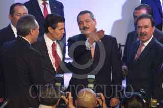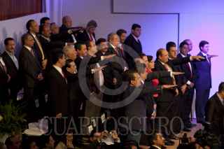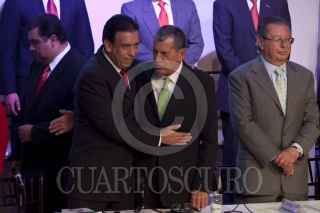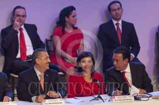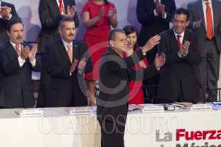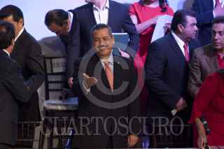 MÉXICO, D.F., 08OCTUBRE2011.- Humberto Moreira, presidente nacional del PRI; Enrique Jackson, secretario técnico y el diputado Francisco Rojas durante una votación en el Consejo Político Nacional del Partido Revolucionario Institucional (PRI), en donde se aprobó que la elección del candidato presidencial sea directa y abierta a militantes y simpatizantes; este evento se realizo en la sede nacional del partido. FOTO: RODOLFO ANGULO/CUARTOSCURO.COM