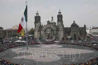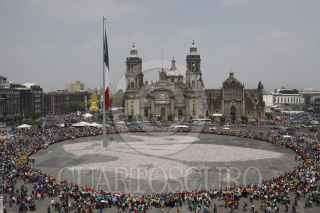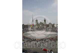 MÉXICO, D.F., 09OCTUBRE2011.- Niños exploradores recolectaron latas de alumiio para formar la flor de lis mas grande del mundo en la explanada del Zócalo. FOTO: IVÁN STEPHENS/CUARTOSCURO.COM