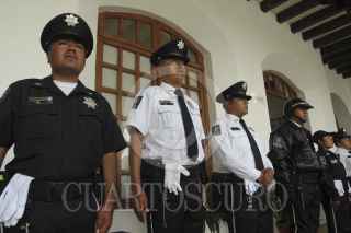 OAXACA, OAXACA, 11OCTUBRE2011.- Luis Ugartechea Begue, presidente municipal de la ciudad de Oaxaca, presentó los nuevos uniformes que portarán los elementos de Tránsito Municipal, mismos que pasan de ser café a azul marino con blanco. FOTO: ARTURO PÉREZ ALFONSO/CUARTOSCURO.COM
