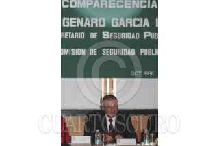 MÉXICO, D.F., 12OCTUBRE2011.- Los diputados Gerardo Fernandez Noroña y Ricardo Sánchez Gálvez tuvieron un altercado de palabras durante la comparecencia de Genaro García Luna, Secretario de Seguridad Publica ante la Comisión de Seguridad Pública para rendir sus informes de actividades como parte de la glosa del Informe de Felipe Calderón, Presidente de México. FOTO: ENRIQUE ORDÓÑEZ/CUARTOSCURO.COM