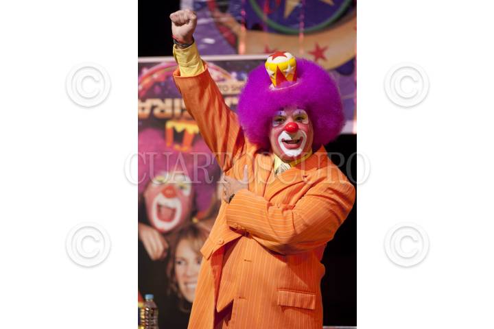 MÉXICO, D.F., 11OCTUBRE2011.- La tarde de hoy en el Teatro Blanquita, el payaso Platanito ofreció una conferencia de prensa para mostrar su desacuerdo con la iniciativa del diputado Priista Armando Corona de modificar el artículo 63 de la Ley Federal de Radio y Televisión para evitar que se haga apología de la violencia y que se abuse del lenguaje en los medios. Platanito se presentara los días14, 15, 16, 21, 22 y 23 de Octubre en dicho teatro. FOTO: FRANCISCO RODRÍGUEZ/CUARTOSCURO.COM