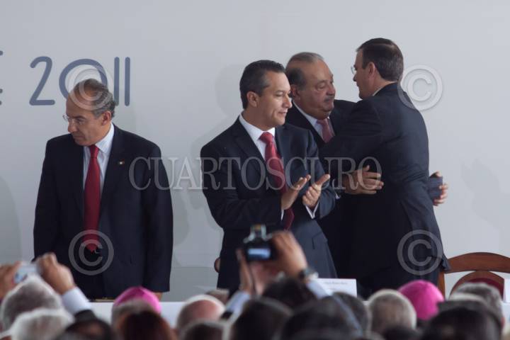 MÉXICO, D.F., 12OCTUBRE2011.- Marcelo Ebrard, jefe de gobierno del Distrito Federal acompañado de su esposa Rosalinda Bueso, a su llegada a la inauguración de la Plaza Mariana que se ubica en la Basilica de Guadalupe. FOTO: RODOLFO ANGULO/CUARTOSCURO.COM