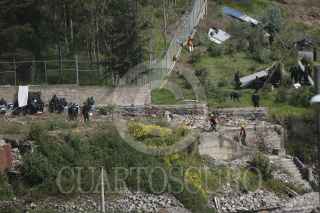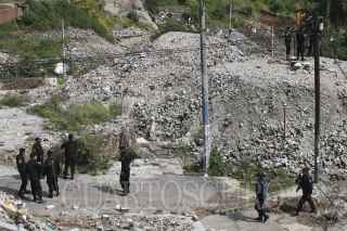 MÉXICO, D.F., 12OCTUBRE2011.- La mañana de hoy arribaron a las inmediaciones de la colonia La Malinche elementos del agrupamiento de granaderos para reforzar el campamento que ya mantenian con la finalidad de mantener en orden en los trabajos de construcción de la supervía poniente que conectarà el sur de la ciudad con la zona de Santa Fe. FOTO: IVÁN MÉNDEZ/CUARTOSCURO.COM