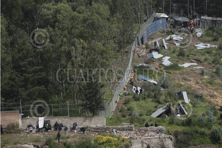 MÉXICO, D.F., 12OCTUBRE2011.- La mañana de hoy arribaron a las inmediaciones de la colonia La Malinche elementos del agrupamiento de granaderos para reforzar el campamento que ya mantenian con la finalidad de mantener en orden en los trabajos de construcción de la supervía poniente que conectarà el sur de la ciudad con la zona de Santa Fe. FOTO: IVÁN MÉNDEZ/CUARTOSCURO.COM