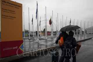 GUADALAJARA, JALISCO, 12OCTUBRE2011.- El día de hoy se cancelaron algunos eventos alusivos a los Juegos Panamericanos Guadalajara 2011, como el izamiento de banderas que se tenían contemplados en la Plaza de las Banderas de la Villa Panamericana, esto por los estragos que ocasiona el huracán "Jova", a su paso por las costas de Jalisco. FOTOS: FERNANDO CARRANZA GARCIA/CUARTOSCURO.COM