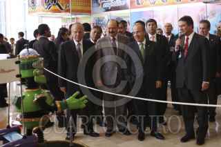 CIUDAD JUAREZ, CHIHUAHUA, 13OCTUBRE2011.- Felipe Calderón Hinojosa, Presidente de México, recorrió la exposición "Juárez Competitiva". FOTO: ALFREDO GUERRERO/CUARTOSCURO.COM