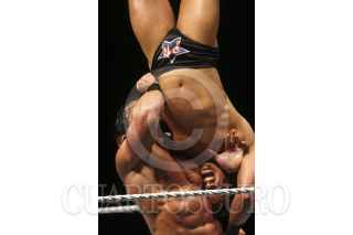 PUEBLA, PUEBLA, 15OCTUBRE2011.- Mason Ryan derrotó a su rival Primo en la función de lucha libre estadounidense de la WWE, la cual se realizó en el estadio de béisbol Hermanos Serdán. Cientos de fanáticos pudieron ver a todas las estrellas de la lucha en su categoría RAW. FOTO: FRANCISCO GUASCO/CUARTOSCURO.COM