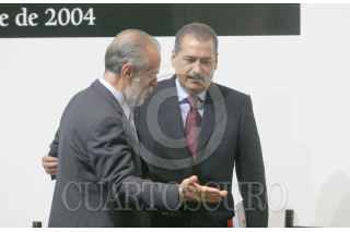 MEXICO D.F 16 NOVIEMBRE 2004.- El presidente Vicente Fox saluda a una mujer en la calle al término del 180 Aniversario de la Rendición de cuentas y fiscalización en México. FOTO: Eunice Adorno/CUARTOSCURO.COM