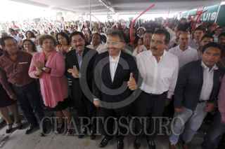 OAXACA, OAXACA, 16OCTUBRE2011.- Héctor Pablo Ramírez Puga Leyva, coordinador de los diputados federales Oaxaqueños del PRI, rindió su segundo informe a los ciudadanos de este estado, acompañado del ex gobernador Ulises Ruiz, quien fue su invitado de honor. FOTO: CARLOS SALINAS/CUARTOSCURO.COM