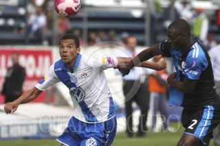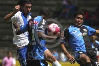 PUEBLA, PUEBLA, 16OCTUBRE2011.- El Puebla de la Franja derrotó a los visitantes del estadio Cuauhtémoc, los Gallos Blancos del Querétaro, durante el juego de la fecha 13 del torneo apertura 2011 donde el marcador final fue de 1 gol a 0. FOTO: FRANCISCO GUASCO/CUARTOSCURO.COM