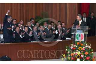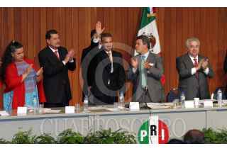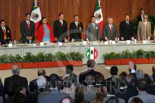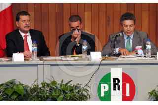 México, D.F., 16NOVIEMBRE2004.- Miguel Alemán Velasco, gobernador de Veracruz, José Murat, gobernador de Oaxaca y Tomás Yarrington, gobernador de Tamaulipas, durante la inauguración del Consejo Político Nacional en su XLIV Sesión Plenaria, realizada en su sede nacional. FOTO: Moisés Pablo/CUARTOSCURO.COM