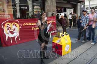 MÉXICO, D.F., 16OCTUBRE2011.- Un decena de jóvenes protestaron a las afueras de un restaurante de comida rápida, durante el marco del Día Mundial al Derecho a la Alimentación. FOTO: GUILLERMO PEREA/CUARTOSCURO.COM