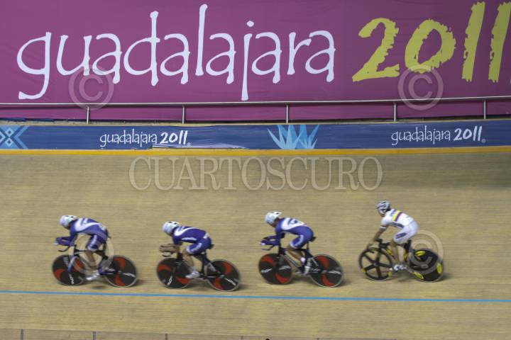 GUADALAJARA, JALISCO, 17OCTUBRE2011.- Daniela Gaxiola y Nancy Contreras en su participación en la prueba de ciclismo de pista de los Juegos Panamericanos Guadalajara 2011 donde obtuvieron la medalla de bronce. FOTO: IVÁN STEPHENS/CUARTOSCURO.COM
