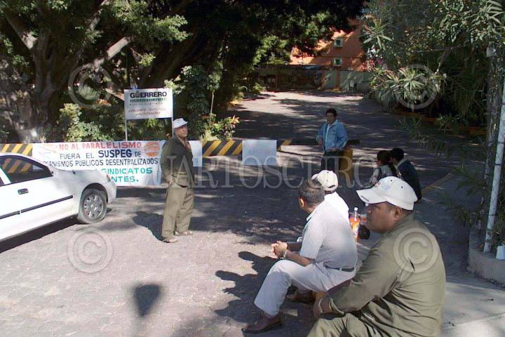 CHILPANCINGO, GUERRERO, 16NOVIEMBRE2004.-Campesinos, maestros y estudiantes que intengran la Promotora Estatal Contra el Neoliberalismo durante un plantón sobre la autopista del sol a la altura de la ciudad de Chilpancingo; justo al frente del lugar donde se desarrollaban las mesas de negociación con sus líderes para exigir se cumpla lo prometido por el gobernador René Juárez. FOTO: Oscar Alvarado/CUARTOSCURO.COM